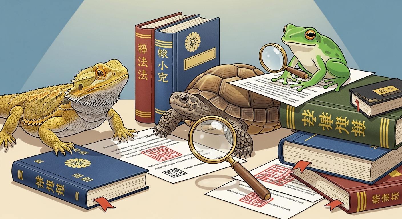 - 爬虫類・両生類の飼育には、動物愛護管理法、特定動物法、特定外来生物法といった特別な法律知識が必須です。