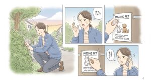 - 情報発信: SNS(XやInstagramなど)や地域の迷子ペット掲示板を活用し、写真付きで情報を拡散します。「いつ・どこで・どんなペットが」いなくなったか、特徴や連絡先を明記しましょう。近所のスーパーや動物病院にポスターの掲示を依頼するのも効果的です。