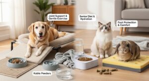 - 食事:消化しやすく良質なタンパク質を含む、カロリーを抑えたシニア犬用ドッグフードへの切り替えを検討しましょう。関節ケア成分(グルコサミン等)や抗酸化成分配合のフードもおすすめです。1~2週間かけてゆっくり切り替えてください。