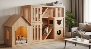 アイデア3:犬小屋風・キャットステップ一体型のおしゃれなケージ