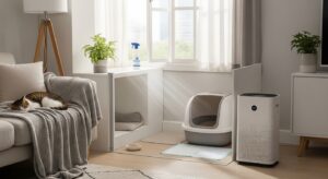 - 室内の消臭対策:定期的な換気に加え、高性能な空気清浄機やペット専用の消臭剤を活用する。ニオイが染み付きやすいカーペットやソファには、丸洗いできるカバーや消臭スプレーが有効です。