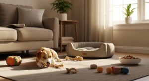 まず、ケージやベッドなど、ペットが誰にも邪魔されずに安心して休める「パーソナルスペース」を確保することが大切です。留守番中も退屈しないよう、知育玩具や噛んでも安全なおもちゃを用意するのも良いでしょう。