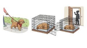 最終的に、飼い主が別の部屋にいてもケージ内で落ち着いて過ごせるようになれば、留守番中も安全なテリトリーで安心して過ごせるようになります。