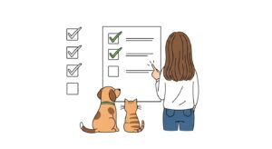- 落ち着いていたら褒める:帰宅後、ペットが落ち着いていれば優しく褒めてあげましょう。