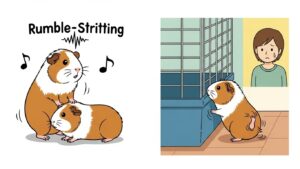 モルモットは繁殖期になると、普段とは違う鳴き声を出すことがあります。特にオスは、喉を「ゴロゴロ」と鳴らし、体を震わせ、腰を振りながらメスの周りを「クルクル」と歩き回る「ランブルストラッティング」という求愛行動を見せます。これは発情の明確なサインです。