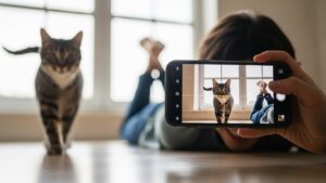 深呼吸をして、まずはリラックスしましょう。完璧な動画を撮ろうと気負わず、「可愛い瞬間が撮れたらラッキー」くらいの軽い気持ちで臨むのが成功の秘訣です。飼い主さんがリラックスして笑顔でいれば、ペットも安心して普段通りの愛らしい姿を見せてくれるはずです。