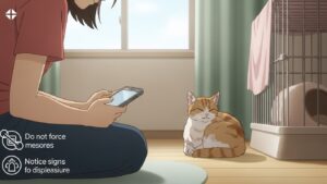- 猫のサイン: 耳を横に倒す(イカ耳)、しっぽをパタパタと激しく振る、低い声で唸る