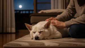 - 触れ合いの時間: 認知機能の低下はペットに強い不安を与えます。寝る前に優しく声をかけ、ゆっくり体を撫でるなど触れ合いの時間を設けましょう。「大丈夫だよ」という気持ちが伝わることで、安心して眠りにつきやすくなります。