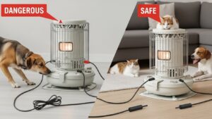 石油ストーブやファンヒーターなど、高温部が露出している暖房器具は、ペットが触れて火傷をするリスクが非常に高いです。使用する場合は、必ず頑丈なストーブガードを設置し、ペットが絶対に中に入れないように徹底してください。また、カーテンなど燃えやすいものの近くに置かないことも火災予防の基本です。