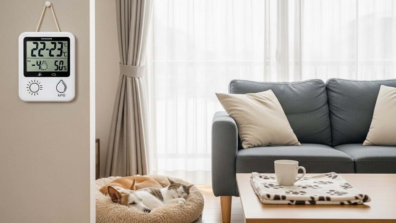 - 快適な室温(犬20-25℃、猫22-26℃)と湿度(40-60%)を保ち、安全な暖房器具を選んで設置することが重要です。