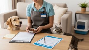 依頼を決める前には必ず事前の打ち合わせを行い、人柄やペットとの相性を確認します。ご飯の種類と量、散歩ルート、持病や投薬の有無など、詳細な情報をまとめたメモを渡すとスムーズです。
