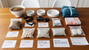 - いつも食べているご飯・おやつ:日数分+予備。環境の変化で食欲が落ちる子もいるため、食べ慣れたものが一番です。