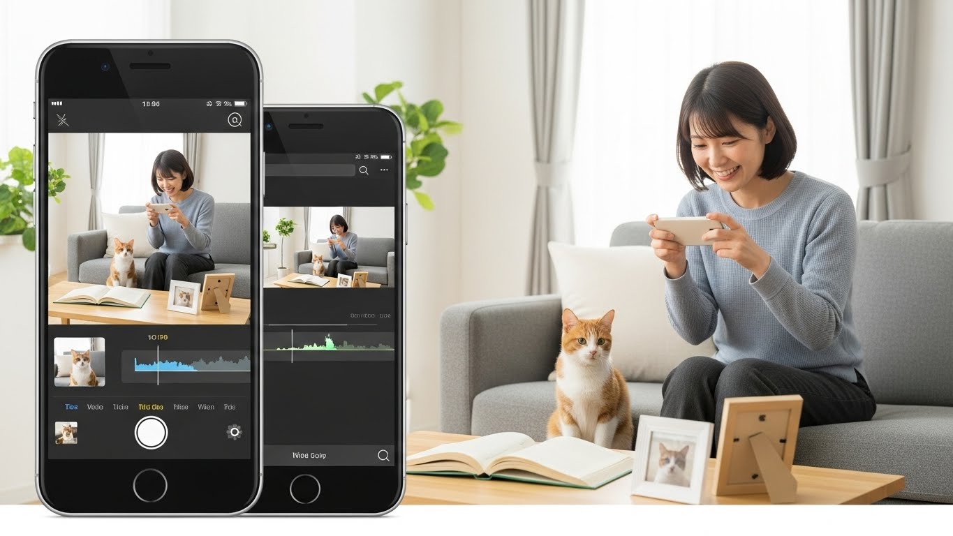 写真だけでなく、動きや鳴き声も記録できる動画は、ペットとの思い出をより鮮明に残すための素晴らしいツールです。少し編集を加えるだけで、感動的なショートムービーが作成できます。