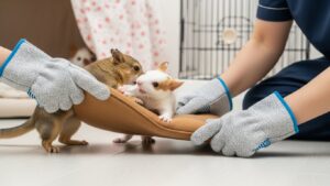 厚手の手袋をはめ、間に板やクッションなどを差し込んで物理的に引き離します。安全に捕まえたら、すぐに別々のケージに戻しましょう。双方の体に怪我がないか念入りにチェックし、出血などがあればすぐに動物病院へ。その後、お互いが落ち着くまで完全に隔離します。