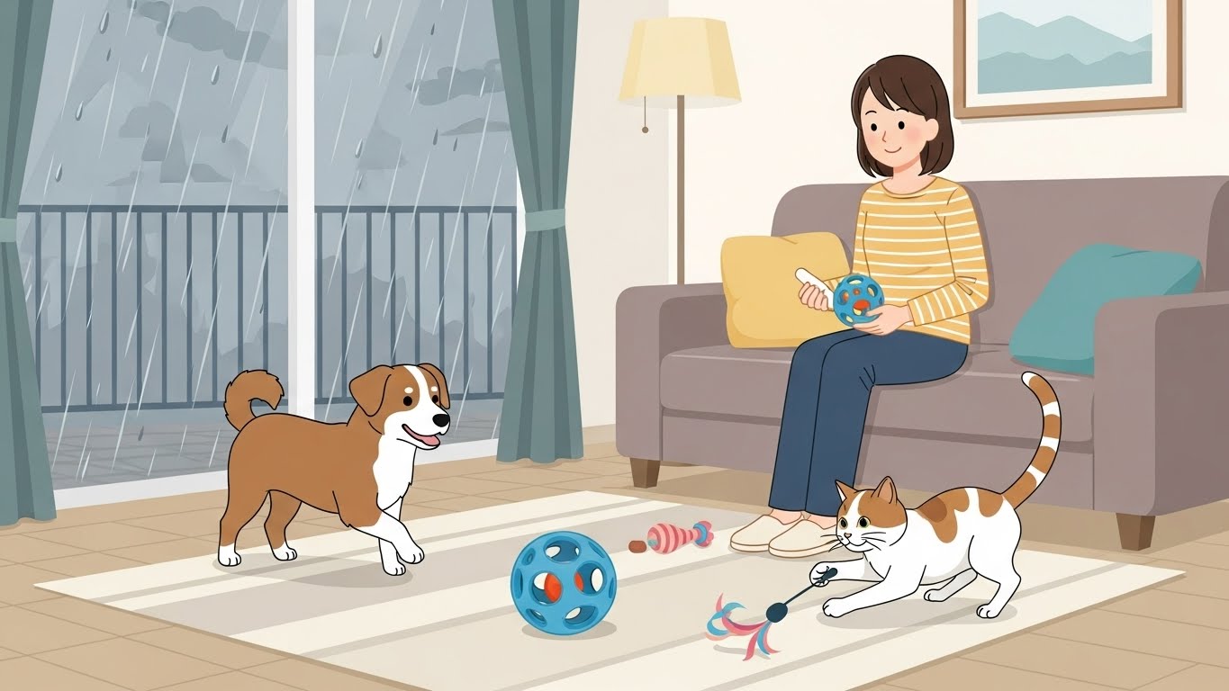 雨の日の室内遊びアイデア15選|犬と猫の運動不足&ストレス解消!おもちゃ・ノーズワーク・手作り遊びガイド