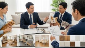 最も重要なのは、ペットリフォームに関する専門知識と実績です。ウェブサイトの施工事例を確認し、犬や猫の特性を理解した提案をしてくれる業者を選びましょう。「ペット共生住宅」などを手掛けている会社は、より的確なアドバイスが期待できます。