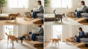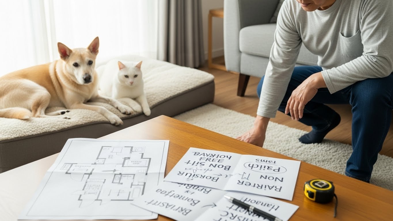 - 安全な動線の確保:家具の配置を見直し、ペットがスムーズに歩ける動線を確保します。床に物を置かないようにし、家具の角にはクッション材を取り付けましょう。