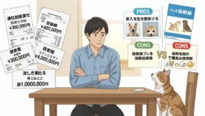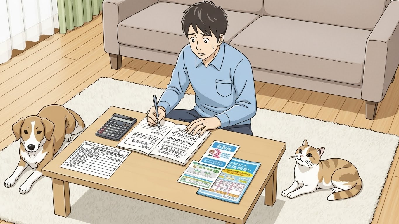 ペット保険は長期契約が前提です。無理なく支払い続けられる金額かを確認しましょう。保険料はペットの種類・年齢・犬種・体重・プランで変動し、年齢が上がるにつれて高くなるのが一般的です。加入時だけでなく、5年後、10年後の保険料もシミュレーションしておきましょう。