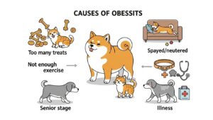 - 肥満の主な原因は食事の与えすぎ、運動不足、避妊・去勢後、加齢などであり、原因を理解した上で対策を立てましょう。
