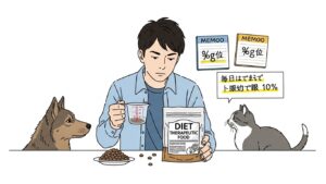 ダイエット中の1日の適切なフード量は、現在の体重ではなく「目標体重」を基準に計算する必要があります。まずは獣医師に相談し、愛犬・愛猫の理想的な目標体重を設定してもらいましょう。自己流で極端に量を減らすと栄養不足を招くため、必ず専門家のアドバイスを受けることが重要です。