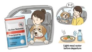 - 乗り物酔い対策として、出発前の食事調整、獣医師への相談、安心できる環境作りが共通して有効です。