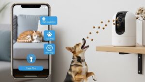 最新の見守りカメラやカメラ付き自動給餌器には、多くの場合マイクとスピーカーが搭載されています。これにより、スマホからペットに話しかける「双方向会話機能」が利用でき、ペットの寂しさや不安を和らげる効果が期待できます。また、遠隔操作でおやつをあげられる機能が付いたモデルも大人気。離れていてもペットとコミュニケーションが取れることは、飼い主とペット双方にとって大きな喜びとなるでしょう。