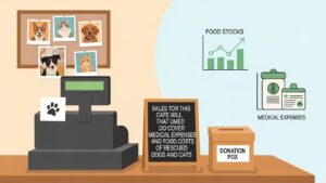 また、多くのカフェではオリジナルグッズの販売や募金箱の設置も行っています。キーホルダーやTシャツなどのグッズを購入したり、少額でも寄付をしたりすることも、貴重な支援となります。こうした収益があるからこそ、団体は新たな保護活動に着手し、一匹でも多くの命を救うことができるのです。