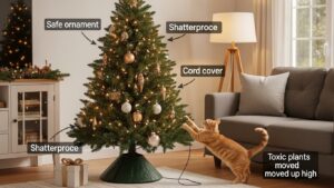 - オーナメントの素材:ペットが口に入れても安全な素材や、飲み込めない大きさのものを選びましょう。ガラス製やラメが落ちやすいものは避けるのが賢明です。