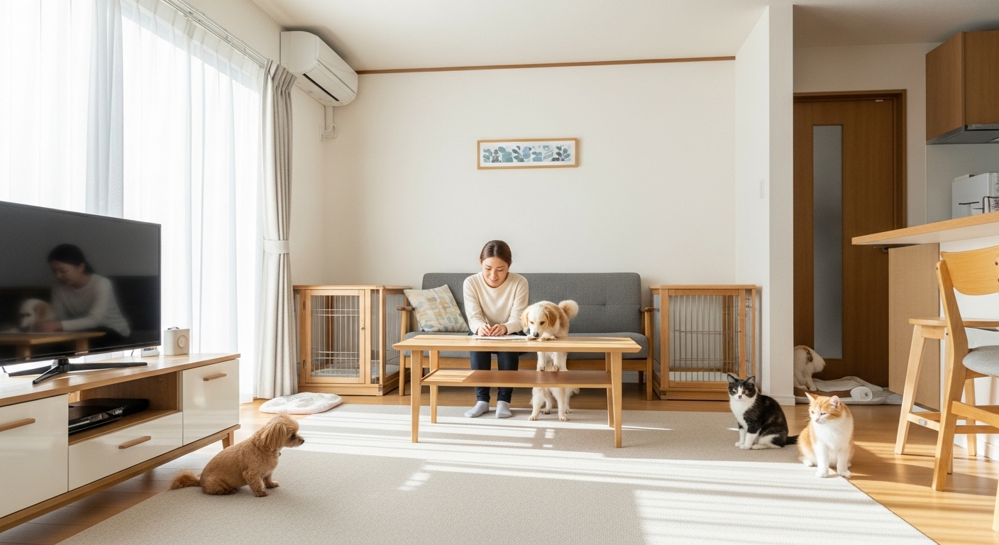- 犬は無駄吠えとしつけ、床の滑り対策、猫は爪とぎと脱走防止、小動物はニオイとコードかじり対策が必須です。