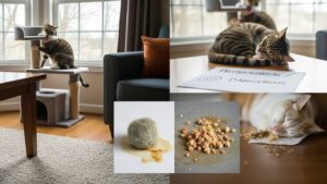 - 説明: 一度に大量のフードを食べたり、急いで食べたりすると、胃が対応できずに未消化のまま吐き戻すことがあります。多頭飼いで競争しながら食べる猫に多いです。