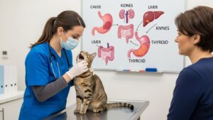 - 定期的な健康診断 症状がなくても、年に1〜2回の健康診断は病気の早期発見に繋がります。特にシニア期の猫には必須です。