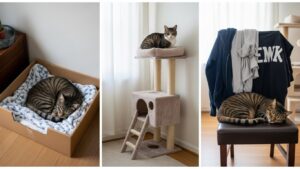 - 少し高い場所: キャットタワーや棚の上など、縄張り全体を見渡せる場所は、外敵に襲われる心配がなく安心できます。