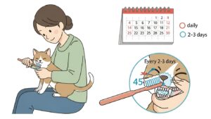 歯垢が歯石に変わるサイクル(犬:3〜5日、猫:約7日)を考えると、理想的な頻度は「毎日」です。これにより、歯垢が硬くなる前に除去できます。