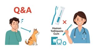 A2: 絶対に使用しないでください。人間用歯ブラシはペットの口には大きすぎ、硬すぎて口内を傷つけます。また、人間用歯磨き粉に含まれるキシリトールは犬猫には有毒で、発泡剤なども体調不良の原因になります。必ずペット専用の安全なグッズを使用してください。