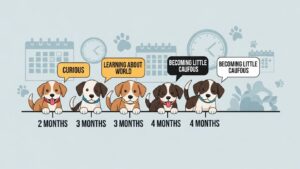 - 生後2ヶ月から4ヶ月の「社会化期」は好奇心が旺盛な黄金期で、この時期に多くの経験を積むことが成功の鍵です。