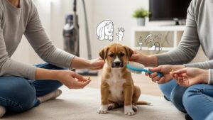 - 4. 飼い主が良いお手本を見せる:飼い主が不安な顔をしていると、その緊張が子犬に伝わります。飼い主自身がリラックスし、穏やかで楽しそうな態度で接することが、子犬に安心感を与えます。