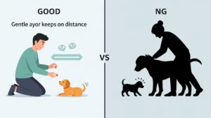- 無理やり他の犬や人に会わせる:相性の悪い相手との接触は犬嫌いの原因になります。犬が苦手な人に無理やり触らせるのもNGです。