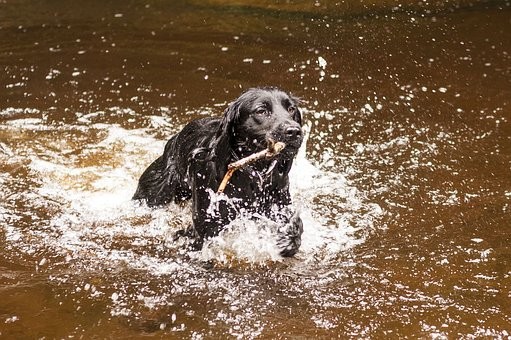 フラットコーテッド・レトリーバーは泳ぐことが大好きで、海や湖に連れて行くと、大はしゃぎで泳ぎます。
