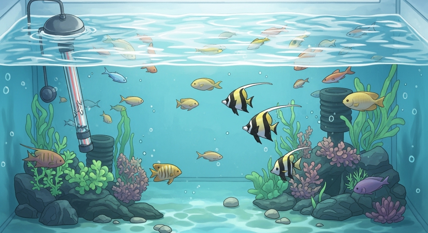 熱帯魚などの観賞魚は、急激な水温の変化に非常に弱い変温動物です。人間にとってはわずかな温度差でも、魚にとっては大きなストレスとなり、病気や死の直接的な原因になります。