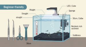 • 水槽: 30cmキューブ(約27L)などの小型水槽から始められます。