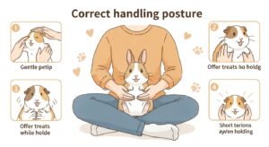 - 抱っこやケアのためのハンドリングは、恐怖心を与えないよう段階的に慣らすことが重要です。