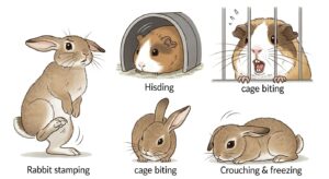 - ケージの隅に隠れて出てこない:不安を感じ、引きこもっている。