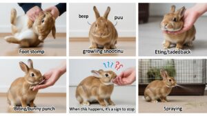 - うさぎの気持ちは鼻ツンツンや頭を低くする、足元を回るなどの行動で表現されます。